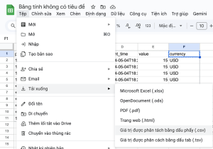 Sau khi làm xong, xuất file csv bằng cách bấm vào tệp, chọn xuất ra và chọn file csv thì mới input lên dataset được nhé