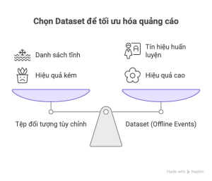 Lúc này, Dataset đóng vai trò là bộ lọc chất lượng (Quality Control). Bạn cần cho Facebook biết: “Đừng tìm những người chỉ mua đơn 100k nữa, hãy tìm những người có hành vi mua lặp lại với LTV (Giá trị trọn đời) trên 5 triệu đồng cho tôi.”